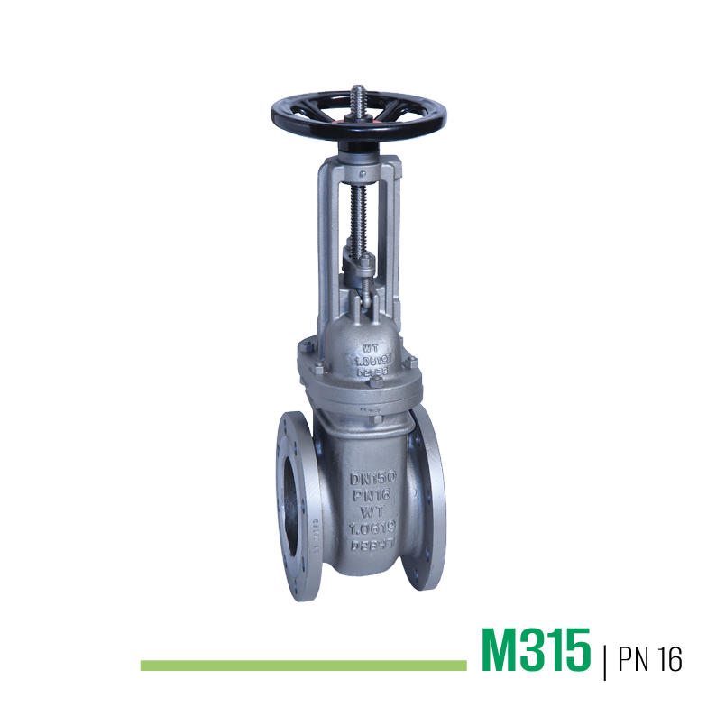 Saracinesca a corpo piatto a tenuta metallica in acciaio al carbonio 1.0619, serie PN 16, con baderna, a vite esterna