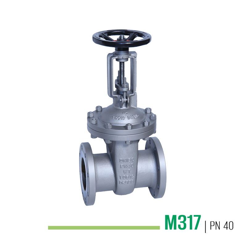 Saracinesca a corpo ovale a tenuta metallica in acciaio al carbonio 1.0619, serie PN 40, con baderna, a vite esterna